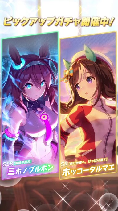 Cygamesは、『ウマ娘プリティーダービー』で、11月10日12時から、「ピックアップ プリティーダービーガチャ」と「ピックアップ サポートカードガチャ」を開催している。