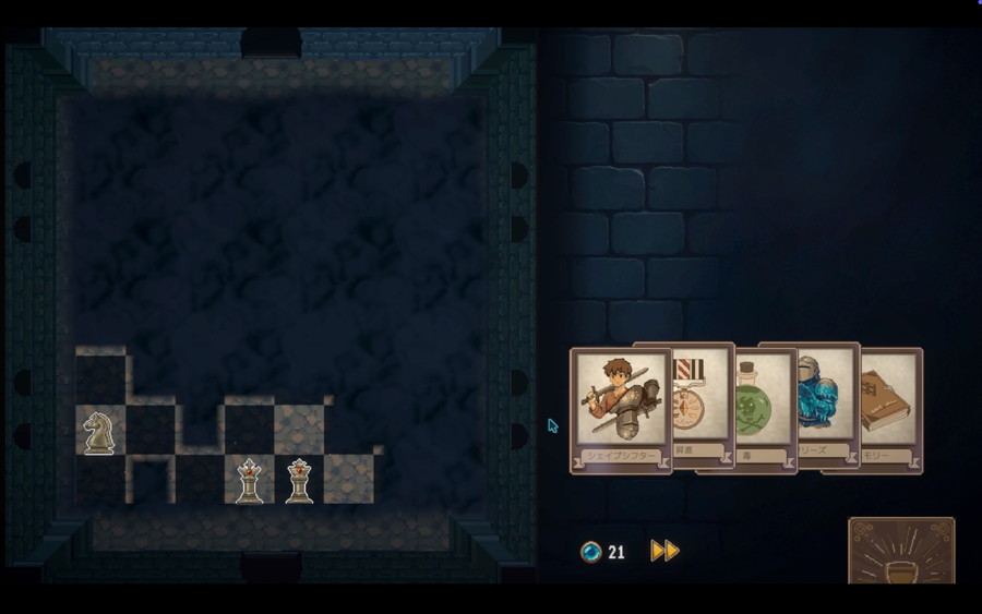 本作は、ダンジョンに捕らわれたクイーンを救うため、小さな自軍を育てながら、さまざまな敵との戦いに挑むチェスローグライトゲーム。