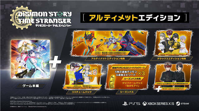 本日公開した追加デジモン&エピソードパック第1弾「Alternate Dimension」と2~3弾がセットになった「シーズンパス」やコスチュームパック、その他ダウンロードコンテンツがセットになったダウンロード版限定の「デラックスエディション」も好評発売中!