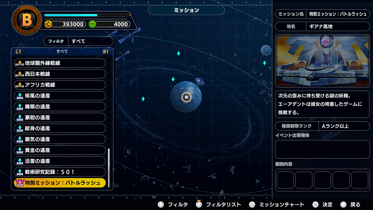 ※『バトルラッシュ』は特別なミッションのため、システムで設定されている難易度ではなく、専用のものが適用されます。そのため、出現する敵の強さなど、難易度による差はありません。またAUTOバトルは使用不可となっています。