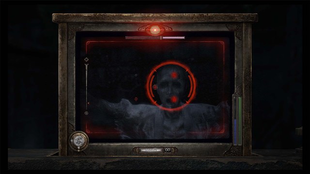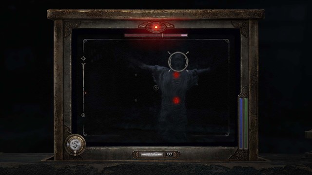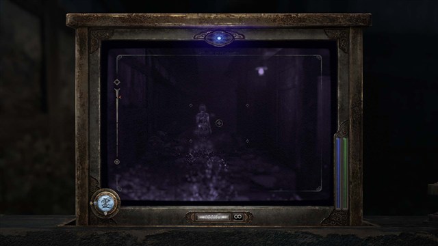 「射影機」を構え、撮影することで、怨霊を攻撃できる。フォーカスポイントを怨霊と重ねて、ピントを合わせ撮影することで、ダメージ量が増える。