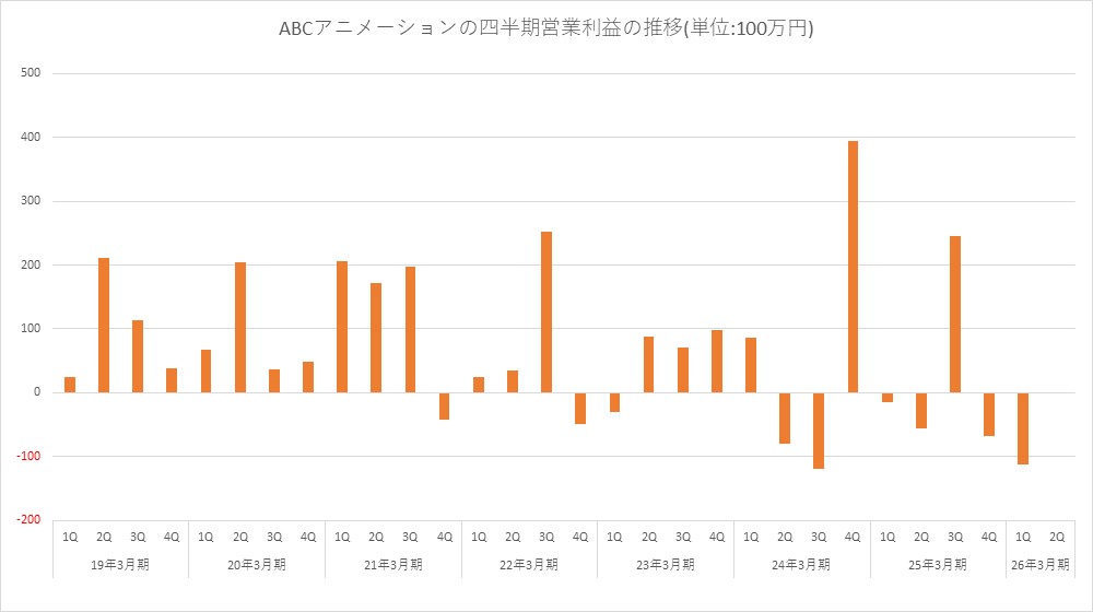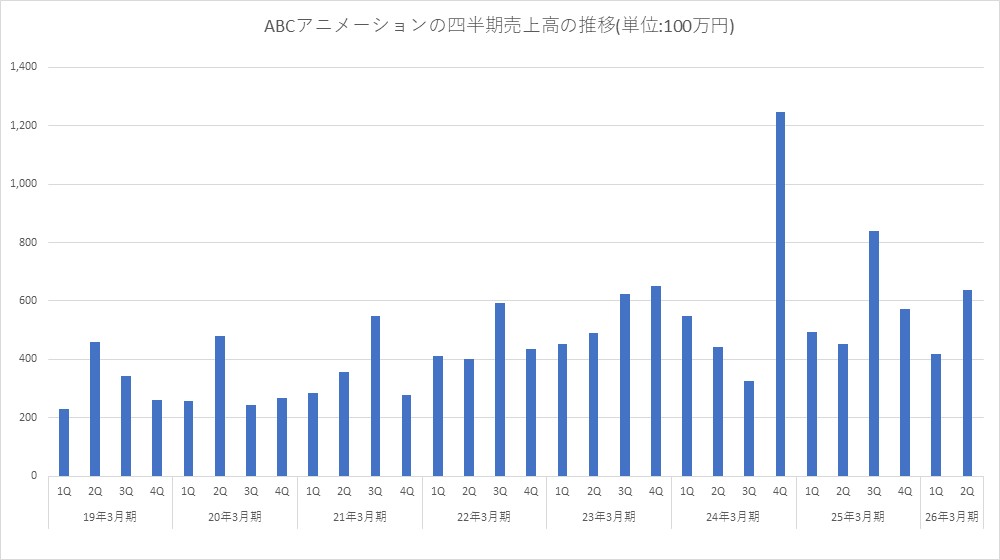 ABCアニメーションの9月中間決算は、売上高が前年同期比11.7%増の10億5700万円、営業損失1億1400万円(前年同期は7000万円の損失計上)と増収・赤字幅拡大となった。