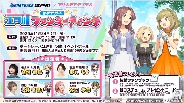 また、11月24日に、BOAT RACE江戸川とアリス・ギア・アイギスのリアルコラボイベント「#ギアガチ 江戸川ファンミーティング」を開催する。