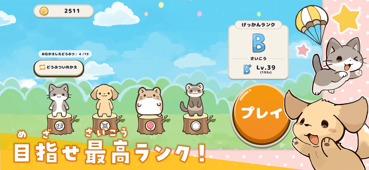 『どうぶつテンヤワンヤ』では、毎月、ゲームの成績に応じて「A++」や「B」のようにランクが認定される。できるだけ高いランクを目指そう。