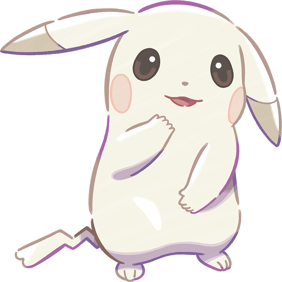 白っぽい、ふしぎな毛色のピカチュウ。耳が垂れていて、どことなくはかなさを感じるような…?