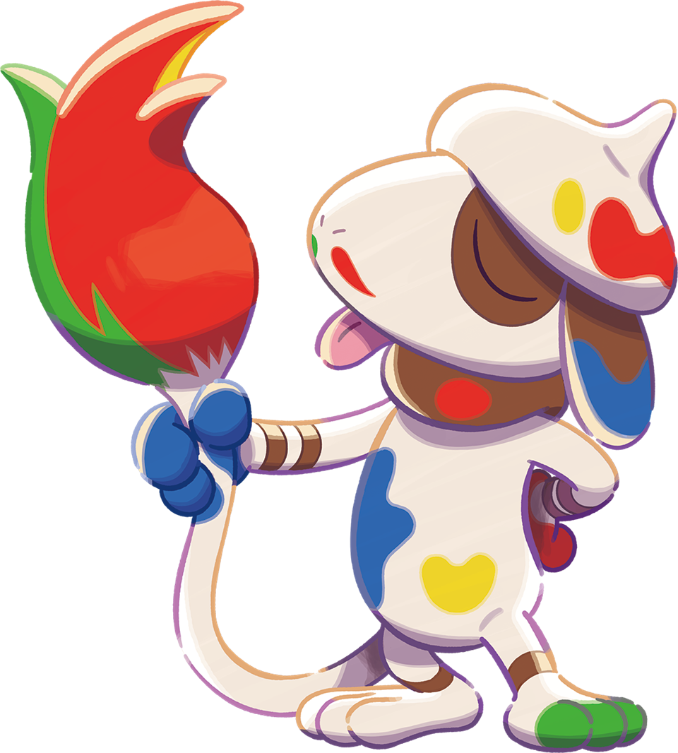 からだのあちこちがカラフルな色をしているドーブル。尻尾を筆のように使うすがたはまるで画家のよう…?