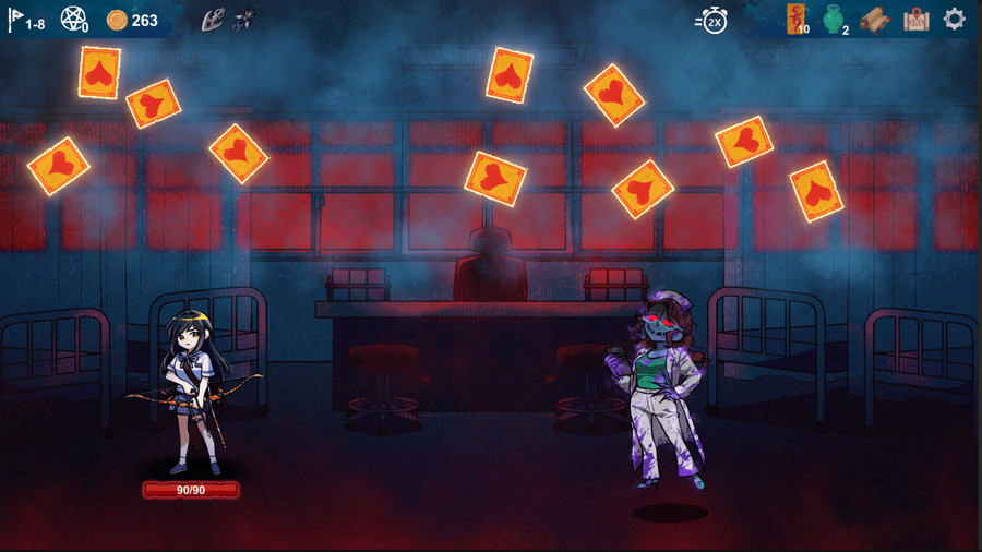 本作は、名門ヨンチョン高校を舞台に禁断の儀式で呼び覚まされた霊が徘徊する迷宮と化した校舎から脱出を目指すローグライク・デッキ構築型ホラーゲーム。