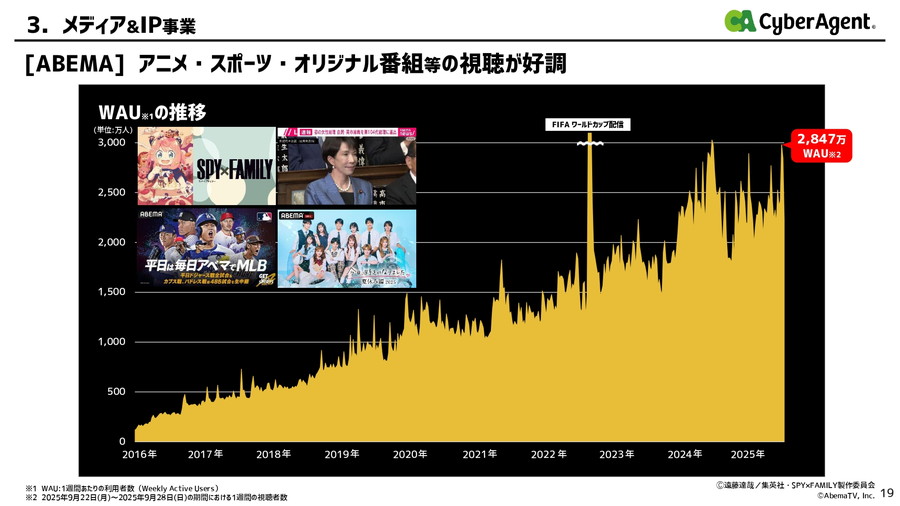 サイバーエージェント、メディア&IP事業が「ABEMA」開局以来10年ぶり黒字 アニメを軸としたIP戦略も着々 「原作から収益化まで一気通貫の体制に」(藤田社長)