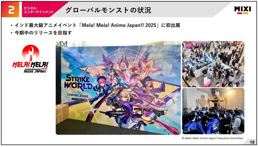 また、その動きが注目されるのは、「グローバルモンスト」の状況だ。9月13日と14日には、インドでのリリースに向けて、⽇本のアニメやエンタメを発信するインド最⼤級のカルチャーイベント「Mela! Mela! Anime Japan!! 2025」に初出展した。