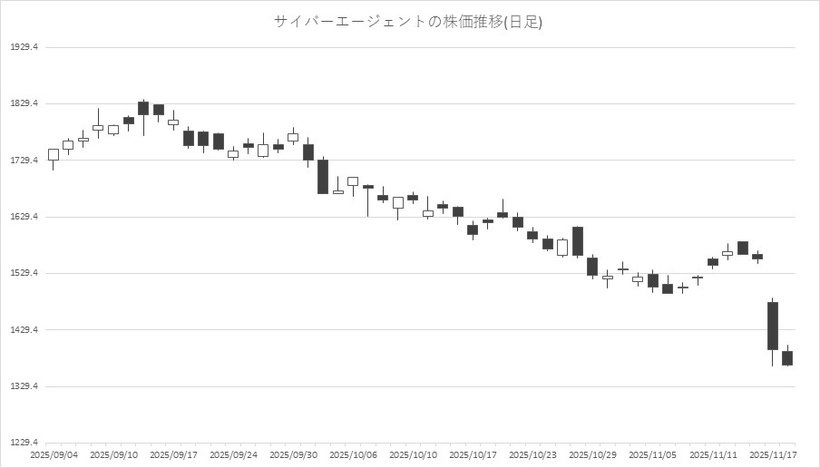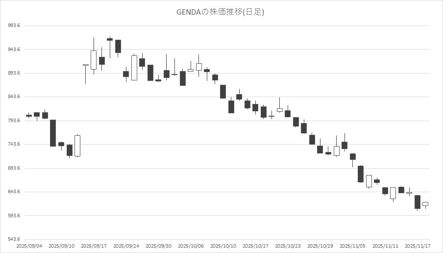 最後に騰落ランキングを見ると、enish<3667>やGENDA<9166>、アクセルマーク<3624>、ビーグリー<3981>が値上がり率上位となり、Link-U<4446>、サン電子<6736>、ブシロード<7803>、イオレ<2334>が値下がり率上位となった。