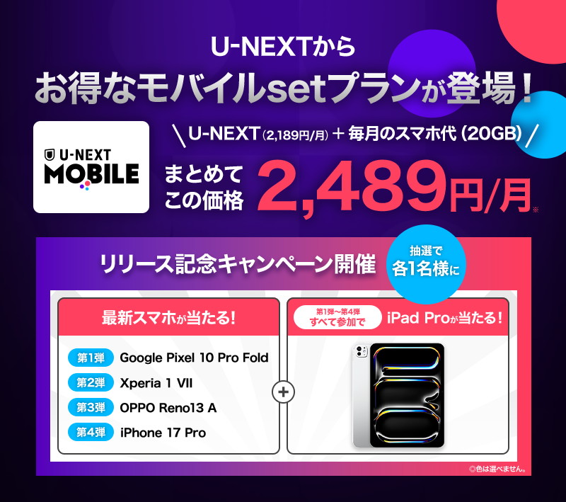 U-NEXTは、新たなMVNOサービス「U-NEXT MOBILE」を11月18日より提供開始した。すでに10月1日にスタートしている「Rakuten最強U-NEXT」に続く「モバイルsetプラン」として提供され、「U-NEXT MOBILE」はU-NEXTと20GBまでのデータ利用料がセットで月額2,489円(税込)で楽しめるお得なプランである。「Rakuten最強U-NEXT」はギガ無制限で、2026年1月31日までのキャンペーン期間中は月額3,278円(税込)で提供される。