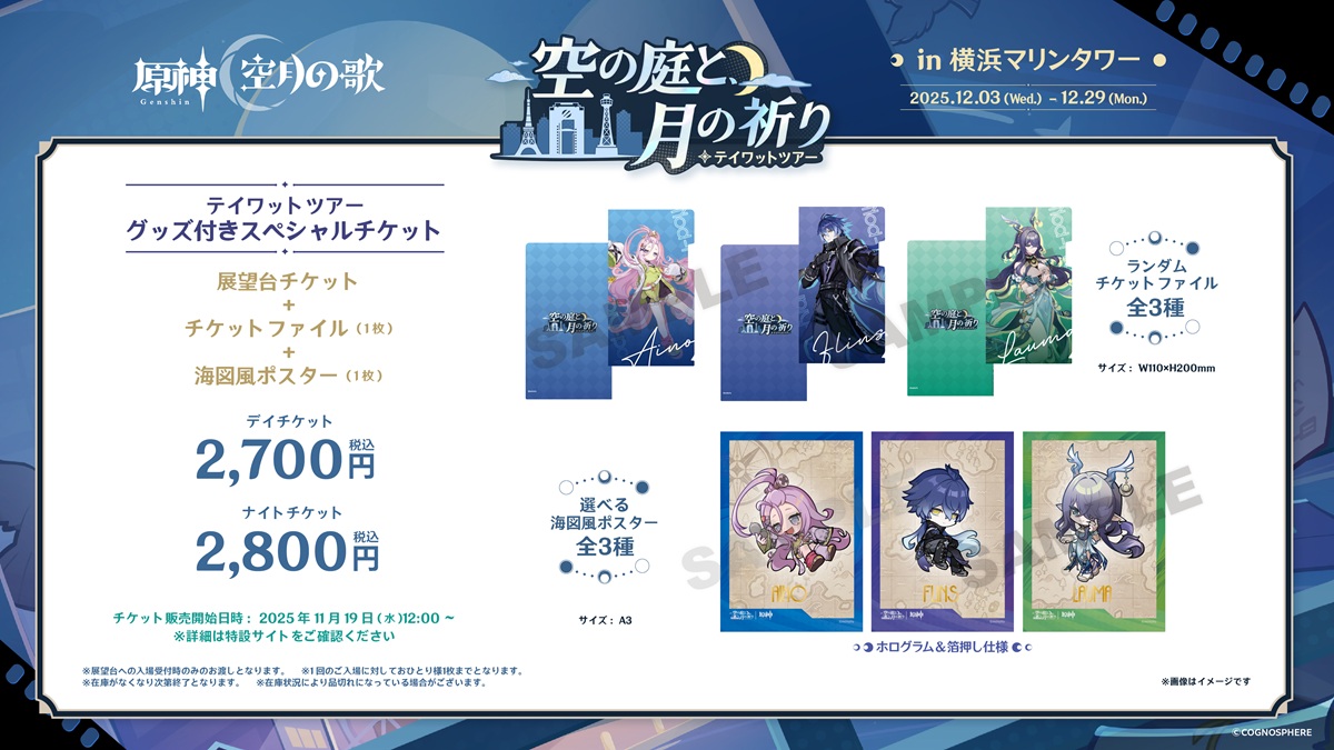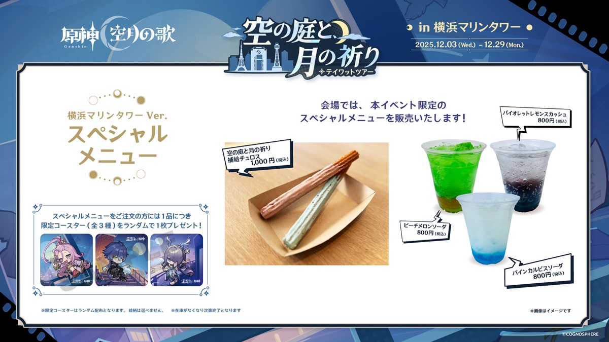 総合不動産企業リストグループのリストプロパティーズを中心とした共同事業体が運営を行う「横浜マリンタワー」と、COGNOSPHEREが運営するHoYoverseが配信するマルチプラットフォーム対応オープンワールドRPG『原神(げんしん)』は、「原神 テイワットツアー ‐空の庭と、月の祈り‐」を、2025年12月3日(水)から12月29日(月)まで開催する。