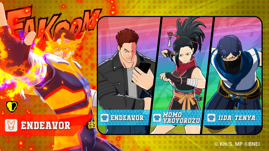 また、「キャラクターガシャ:オルタナティブ(S14) エンデヴァー」では、「エンデヴァー【赫灼熱拳】」や新コスチュームの「エンデヴァー(レザースタイル)」、「八百万百(くノ一)」などがラインナップされている。