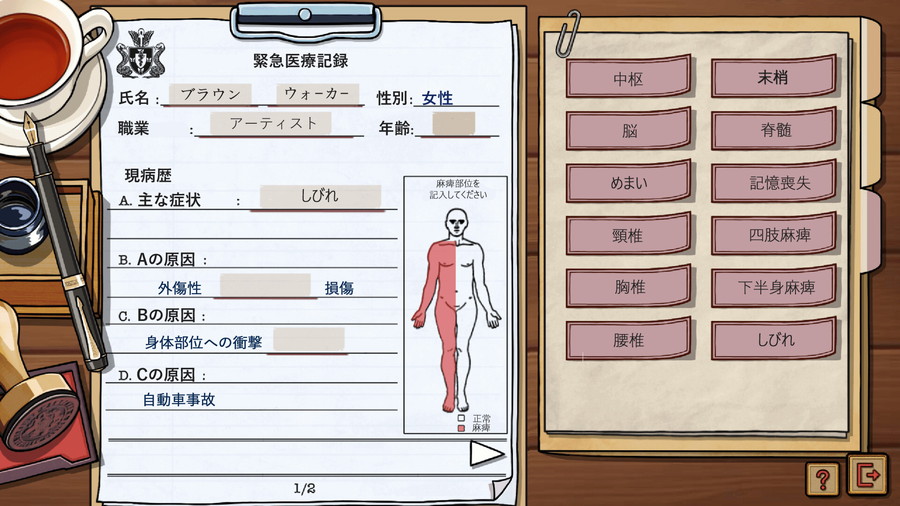 ・リアルな法医学文書や医療チャートを作成するゲームプレイ