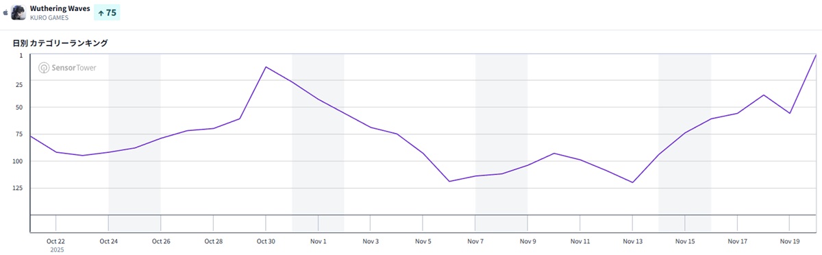| 2 | 56 | ↑54 | 鳴潮(Wuthering Waves) | KURO GAMES |