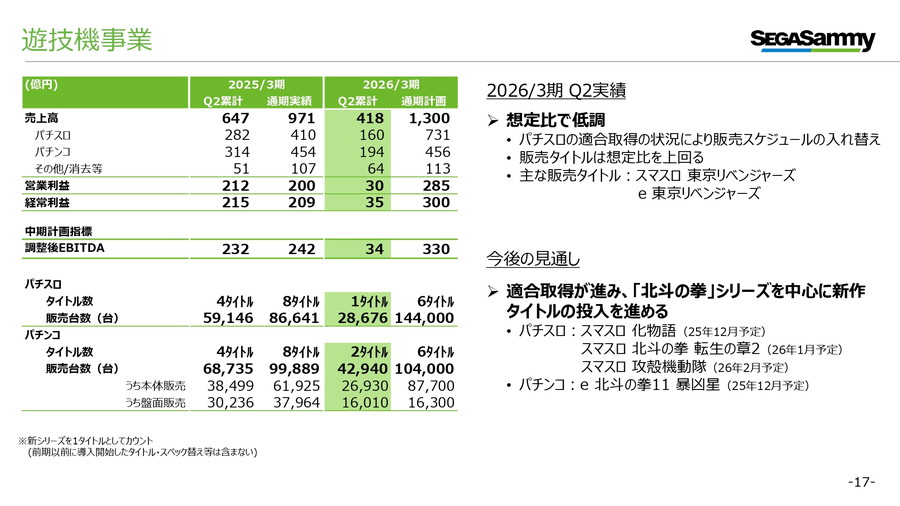 ■遊技機事業:『東京リベンジャーズ』が好調、下期は『北斗の拳』投入
