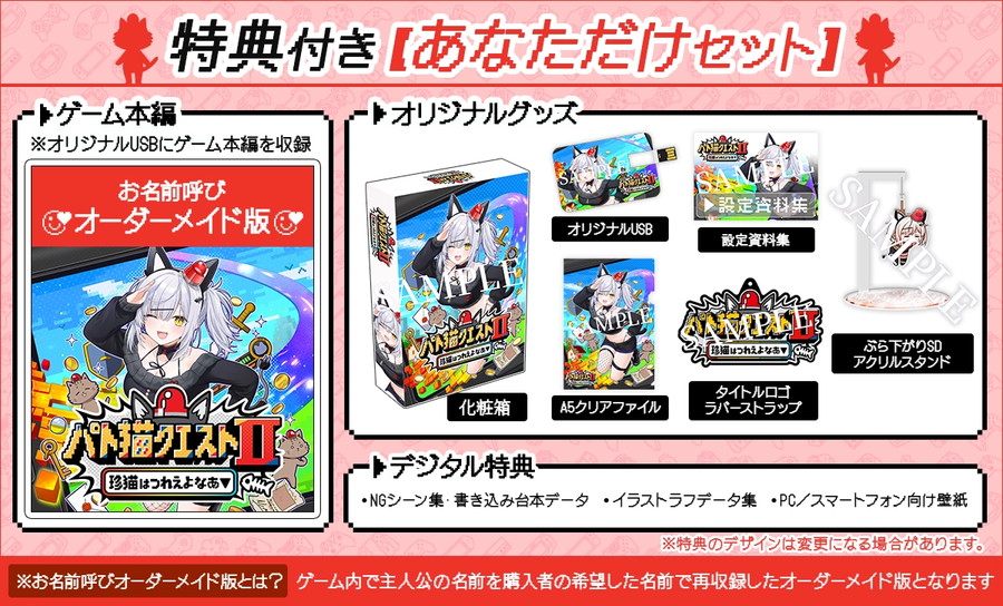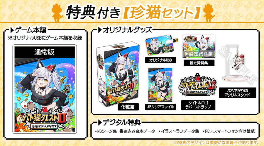 ・ゲーム本編に加えアクリルスタンドや設定資料集など豪華特典が同梱された『珍猫セット』(税込12,800円)の予約を受け付けている。