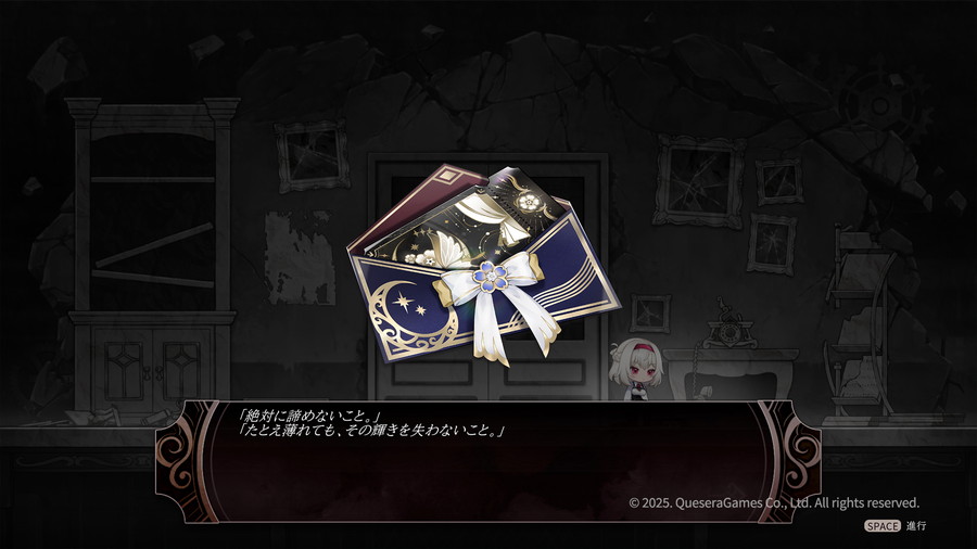 本作は、ステージを駆け抜けながら、宝石の姿で並ぶ音符をタイミングよく叩いて音楽を奏でるランアクション型のリズムゲーム。記憶を失った少女二人が、舞台公演を完成させることで劇場に再び命を取り戻し、秘密が明かされていく物語である。プレイヤーは舞台監督のアレフと女優のリオラを導き、2つのキーだけで遊べるシンプルな操作で、音楽とともにステージを駆け抜けていく。歪められた童話や伝説を題材にしたミュージカルを上演し、物語を即興で変えて修復することで、美しくも不気味で悲しい舞台をハッピーエンドに導くことが目標となる。また、クライマックスには歌の対決となるボス戦も待っている。