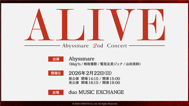 ■「Abyssmare 2nd Concert -ALIVE-」開催決定!チケット最速先行申込受付中!