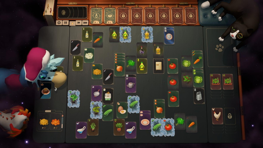 ・正しい素材と器具を選び、カードを重ねて料理を完成させるハイスピードカードスタッキングが重要となる