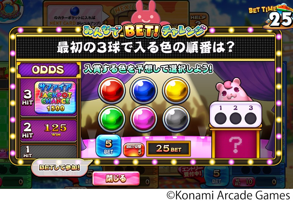 すごろくチャレンジを大きくリニューアルし、新たにイベントマス「みんなでBET!チャレンジ」が登場する。最初の3球で入る⾊の順番を予想してJACKPOT CHANCE獲得を狙おう!