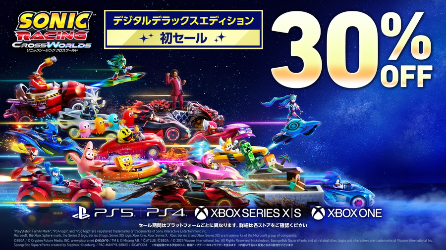 なお、『ソニックレーシング クロスワールド Nintendo Switch 2 Edition』が12月4日に7,990円(税込)で発売予定である。(パッケージ版は2026年初頭発売予定)。また、PlayStation 5/PlayStation 4/Xbox Series X|S/Xbox One向けのデジタルデラックスエディションが30%OFFとなるブラックフライデーセールを実施中である。