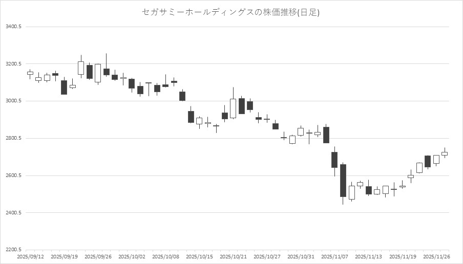 大手ゲーム関連を見ると、ソニーG<6758>、セガサミーHD<6460>、コナミG<9766>、カプコン<9697>が高く、任天堂<7974>、バンダイナムコHD<7832>、スクエニHD<9684>、コーエーテクモHD<3635>が安い。
