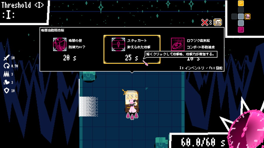 ・「時間停止」で弾幕の隙間をすり抜けて攻撃するアクション
