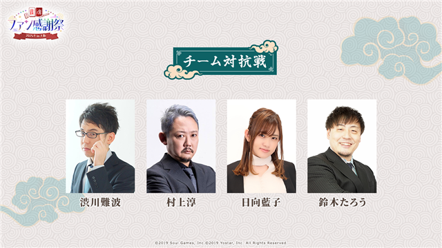 ステージプログラムと関連して、ユーザー参加型企画である「チーム対抗戦」については、現在参加事前エントリーを受け付けている。これまでの各リアルイベントでもユーザーの点数が局面を大きく左右し、会場が一体となって盛り上がりをみせる大好評企画となるので、ぜひ奮ってご応募ください!