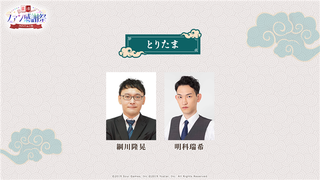 また、会場メインステージの様子は『雀魂-じゃんたま-』公式 YouTube チャンネルにて生放送を予定しているほか、同チャンネルの人気コンテンツ「とりたま」の生配信も開催予定!綱川隆晃さんとアシスタント・明科瑞希さんによる、ユーザー参加型の対局企画を実施するので、ぜひこちらもお楽しみに!