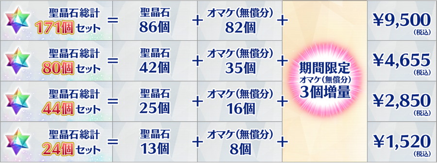 『アニプレックス オンライン』聖晶石増量キャンペーンを実施中。キャンペーン期間中、ゲーム内での「聖晶石」購入より5%割引に加えて、すべての商品のオマケ聖晶石が3個増量する。