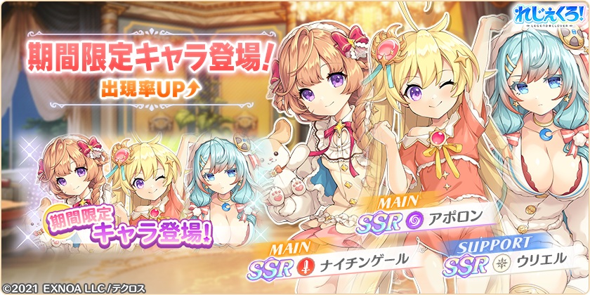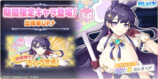 EXNOAは、『れじぇくろ!~レジェンド・クローバー~』において、12月2日からバニーガール衣装の「カシオペア」「ソロモン」「アルテミス」が新たに登場することを発表した。さらに、バニーガール衣装の「弁慶」を仲間にできるイベント「愛しき者たちと、希望を賭けて」も開催する。