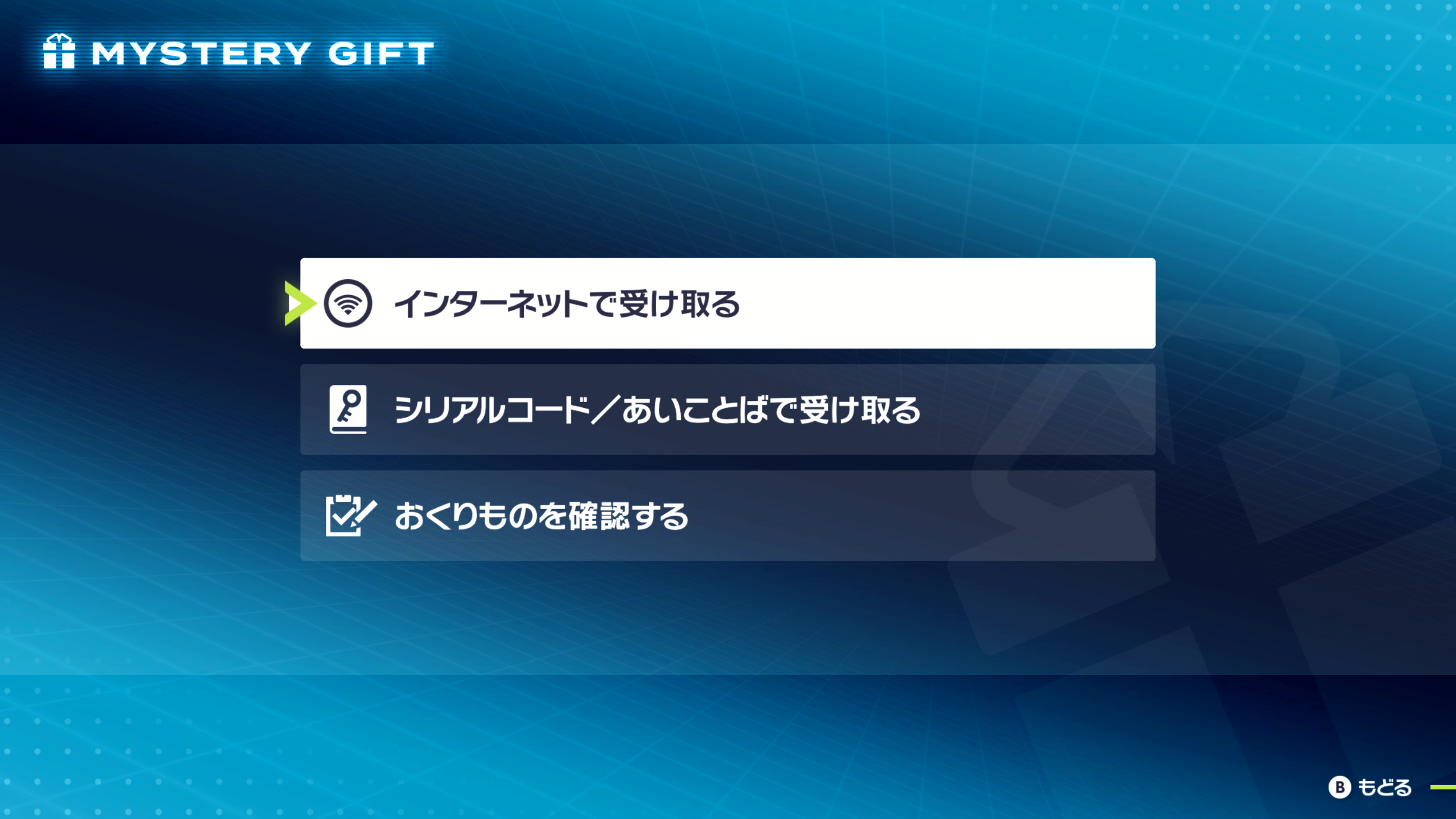 ゲーム内の「ふしぎなおくりもの」から「インターネットで受け取る」を選ぶと受け取れる。