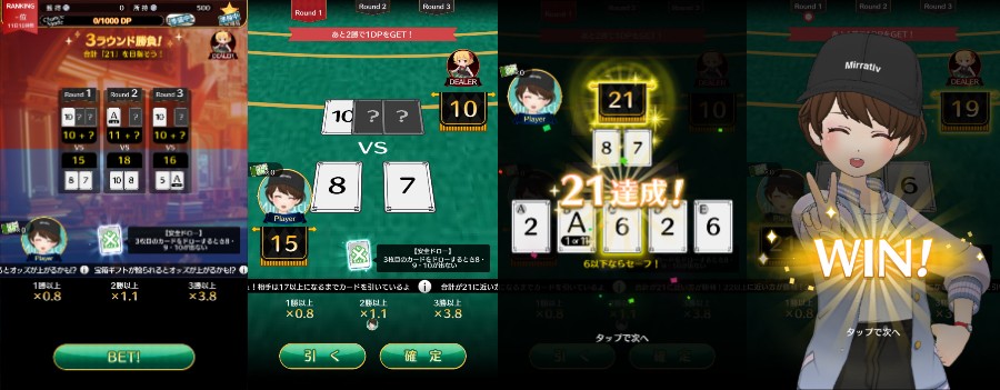 本作は、配信者とディーラーが互いにカードを引き、合計値をより21に近づけた方が勝利となるライブゲームである。配信者本人に加えて視聴者も、配信者がディーラー相手に「何勝できるか」を予想してメダルをBETし、配信者と共に勝負に挑む。
