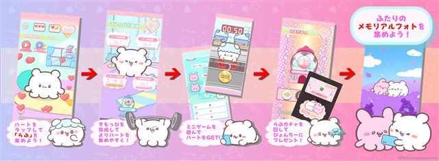 『らぶいーず メモリアルコレクション』は、ハートを集めて「らぶ」を溜め、キャラクターを育てながら“ふたりのメモリアルフォト”をコレクションしていく放置系×育成×フォト収集ゲーム。メモリアルフォトは本作限定の描き下ろしイラストで全50枚!世界各地を旅する二人の楽しい旅行風景を、ぜひコレクションしよう!