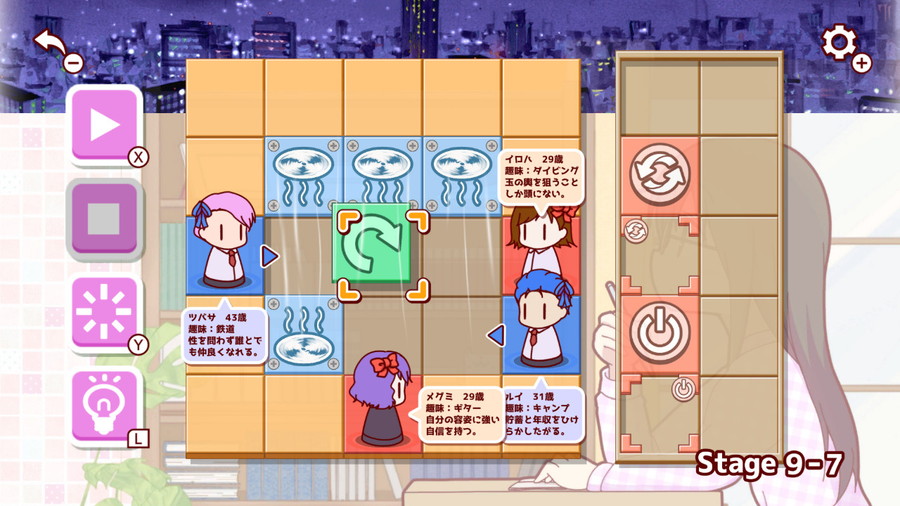 本作は、3×3のフィールドに様々な効果を持つパネルを配置することで、恋する二人のキャラクターを出会わせることを目的としたパズルゲーム。Steam版では76レベルが収録されていたのに対し、Nintendo Switch版では新たに40レベルを追加し、さらにボリュームアップしたパズルが楽しめる。