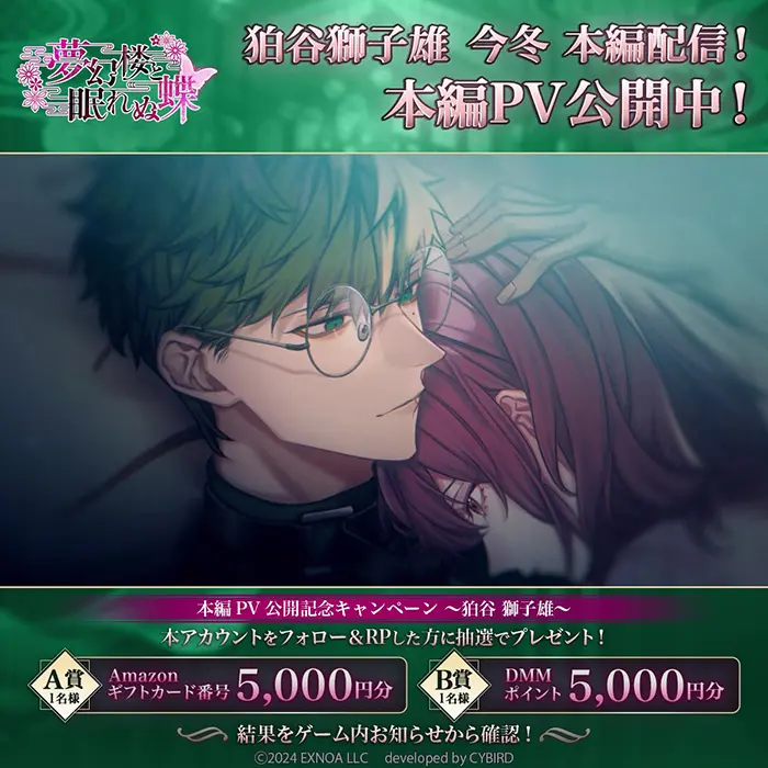 EXNOA、「夢幻楼と眠れぬ蝶」で獅子雄(CV:オベリスク=絽綺)本編登場に先駆けゲーム内で特設ページを公開…獅子雄本編PVも