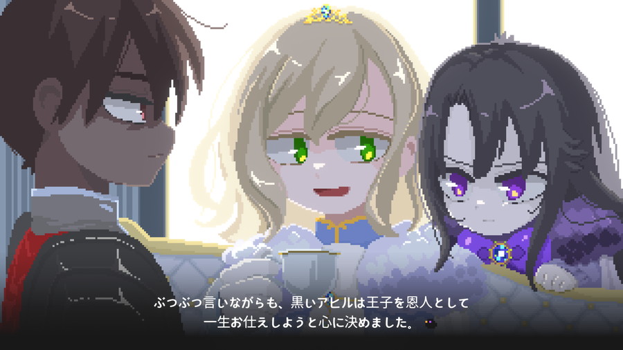 ・メルヘンファンタジーの物語: 森でいじめられていた不吉な黒いアヒルが、王女、巫女、狩人のうち一人についていって街に出る。魔女であることを隠し、人々からこっそり魔力を集めて生きるという、さまざまな結末が待っている。