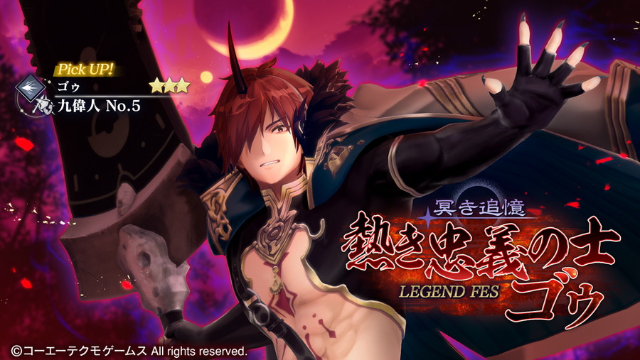 また、イベントにあわせて、ガチャ「冥き追憶 熱き忠義の士 ゴゥ LEGEND FES」も開催された。ピックアップ対象キャラとして★3 ゴゥ【九偉人 No.5】が新登場する。本ガチャでは、PUキャラの提供割合が通常の2倍である。10回ガチャは星導石 3,000個で引くことができる。有償限定のステップアップガチャも同時開催されており、STEP5ではPU確率が3倍(6%)にアップし、お迎えできる★3キャラはゴゥ【九偉人 No.5】のみとなっている。