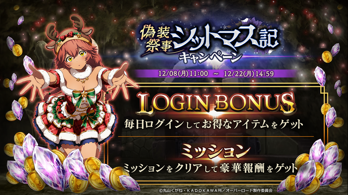 テンクロスは、『オーバーロード』原作のスマホゲーム「MASS FOR THE DEAD」でイベント『偽装祭事シットマス記』の開催を発表した。