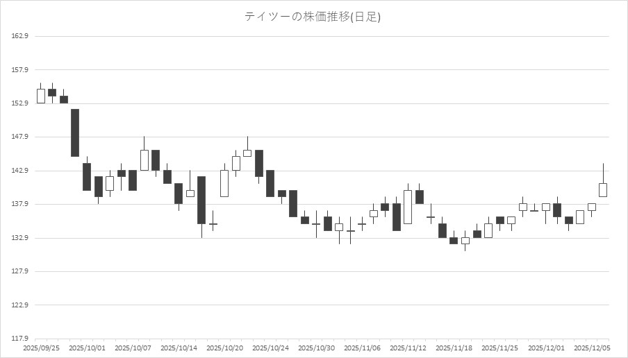 12月8日の東京株式市場では、「古本市場」や「ふるいち」を展開するテイツー<7610>が3日続伸。前週末に34%増と好調な月次決算を発表したことが材料視されたようだ。今後の業績を期待した買いが入っている模様だ。