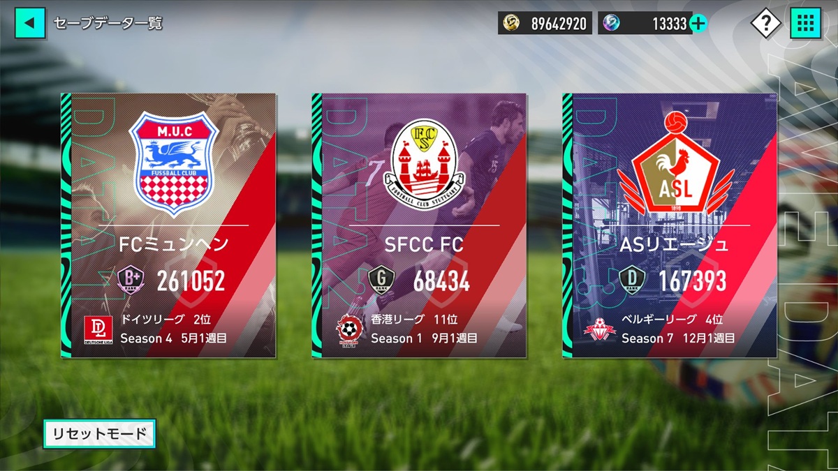 複数のセーブデータに対応することで、例えば1つ目のデータでは お気に入りのチームをリーグ優勝に導きつつ、 2つ目のデータではオリジナルチームで欧州の強豪リーグにチャレンジ、という遊び方が可能。
