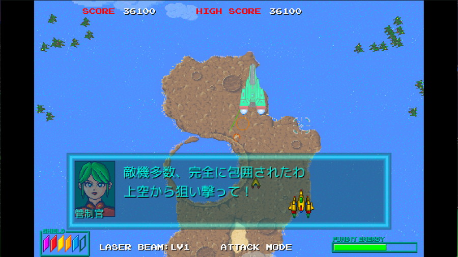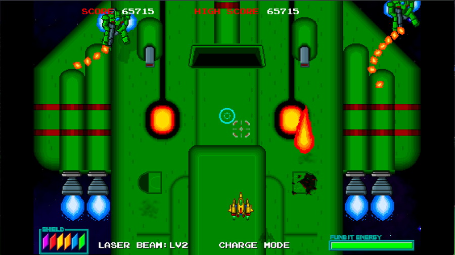 本作は、1980年代、90年代の16bit機やレトロアーケードゲームをイメージしたドット絵2D縦スクロールシューティングゲーム。照準を合わせた敵機を自動追尾ミサイルで破壊したり、レーザービームや散弾、パワーショットなど「狙って撃って倒す」シューティングゲーム原点の爽快感に焦点を当てたという。あえて連射機能や過剰な弾幕演出を使わないゲームシステムを採用したとのこと。