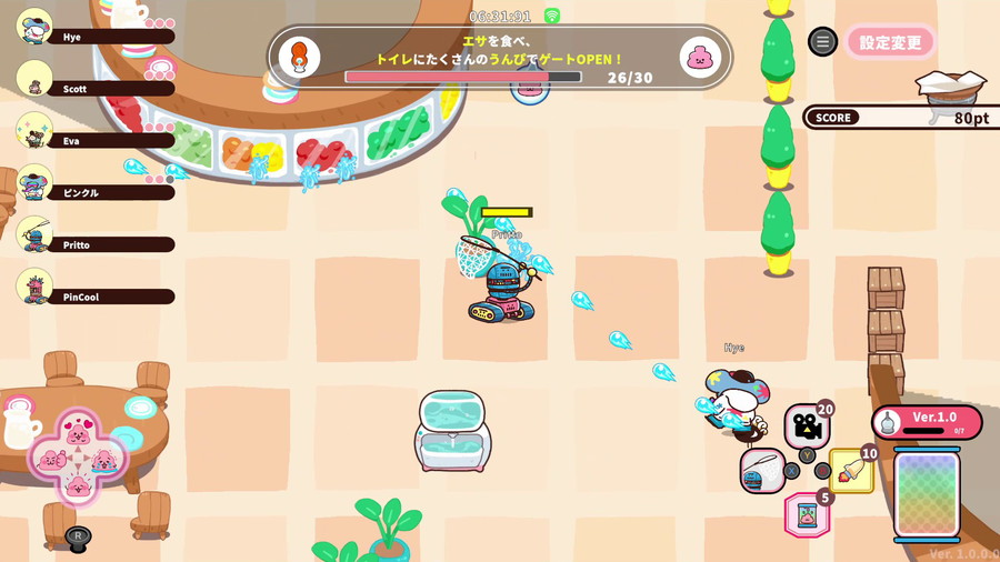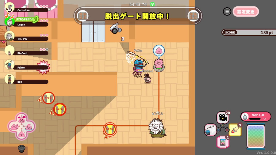 本作は、“食う!寝る!出す!”をテーマにした、世界初の排泄型脱出アクションパーティーゲーム。最大6人でのオンラインマルチプレイに対応し、仲間やライバルとともに脱出を目指す。プレイヤーは脱獄を図る動物チーム(4人)と、それを阻止しようとする看守ロボットチーム(2人)のどちらかを選択して対戦するカジュアル対戦鬼ごっこゲームだ。勝敗のカギは「うんぴ」と「おぴっこ」の使い方に掛かっている。