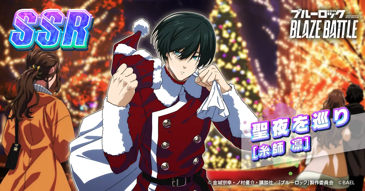 BAELは、TVアニメ『ブルーロック』を原作とするスマホゲーム『ブルーロック BLAZE BATTLE』(以下、ブレバト)にて、クリスマスをモチーフにしたサンタクロース姿の【糸師 凛】が新登場し、これに合わせて最大90連分の無料ガチャなど、豪華報酬が手に入る「聖夜の軌跡キャンペーン」を開催する。
