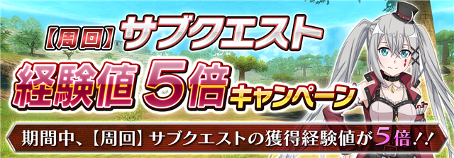 期間中【周回】サブクエストの獲得経験値が5倍になる。
