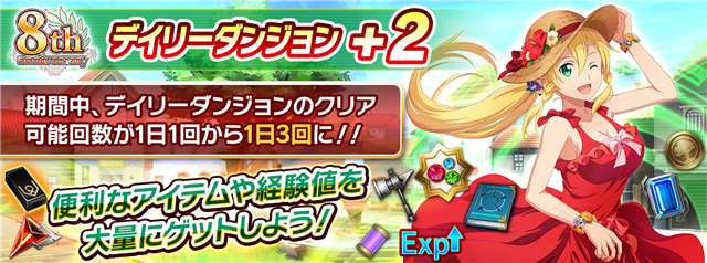 デイリーダンジョンのクリア可能回数が1日3回に増加する。
