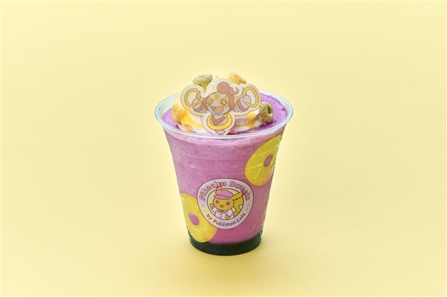 いたずらポケモンのフーパをイメージした、オレンジ風味のチョコレートフラッペ。ピンク色なのにチョコ味!?と驚くフラッペは、まるでフーパのいたずらみたい。爽やかなオレンジ風味に、カップの底のチョコソースを混ぜると、濃厚な味の変化を楽しめる。