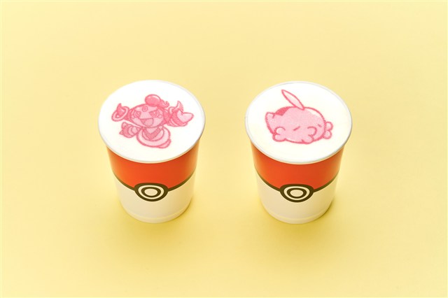 定番メニューのゲットラテは、ドーナツとの相性ばつぐん!絵柄は、ピカチュウスイーツオリジナルデザインの、フーパとゴクリンの全2種から選べる。