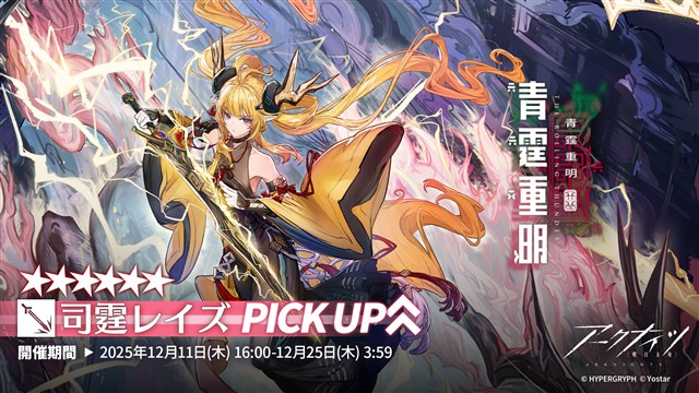 Yostarは、『アークナイツ - 明日方舟 -』において、12月11日16:00より期間限定イベント、オムニバスストーリー「鏡中集」を開催することを発表した。合わせて、新規オペレーター「★6 司霆レイズ」(CV:甲斐田裕子)、「★5 レコードキーパー」(CV: 前田誠二)を採用できるイベントスカウト「青霆重明」の開催や、コーデ・インテリアテーマ・お得パックの新規入荷なども実施する。